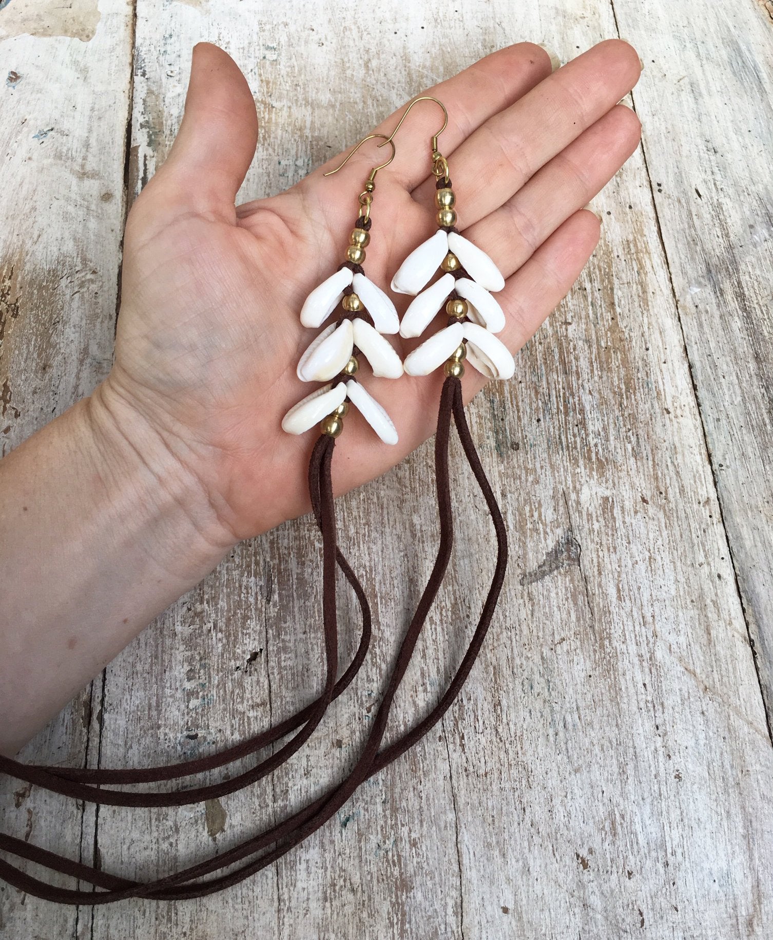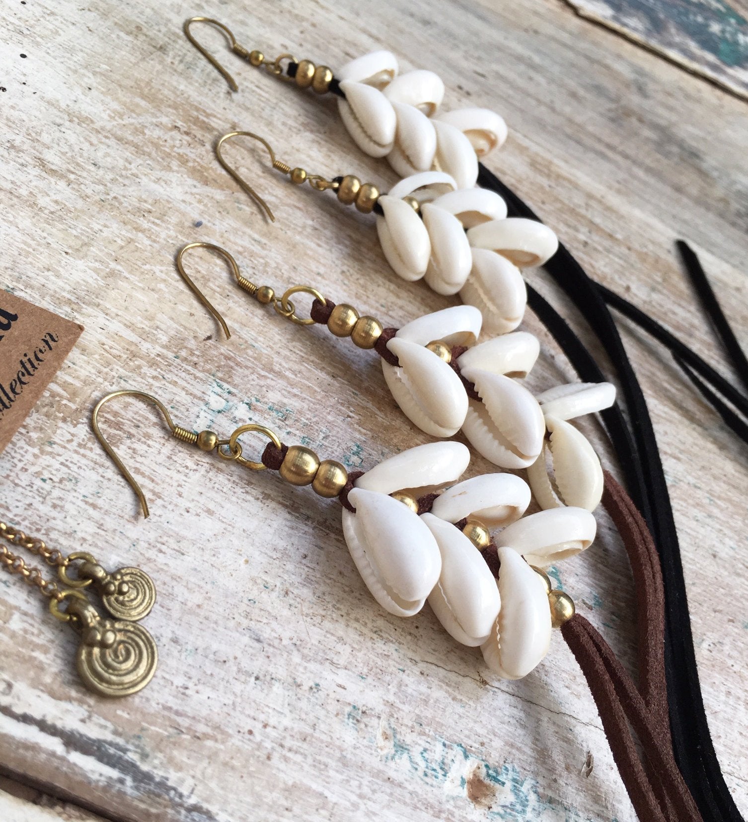 MATERIAL: Cowrie shells, vegan leather string and solid brass beads. The string comes in black or dark brown, choose the colour above. Please note that all natural items such as shells have variations in size and coloring.