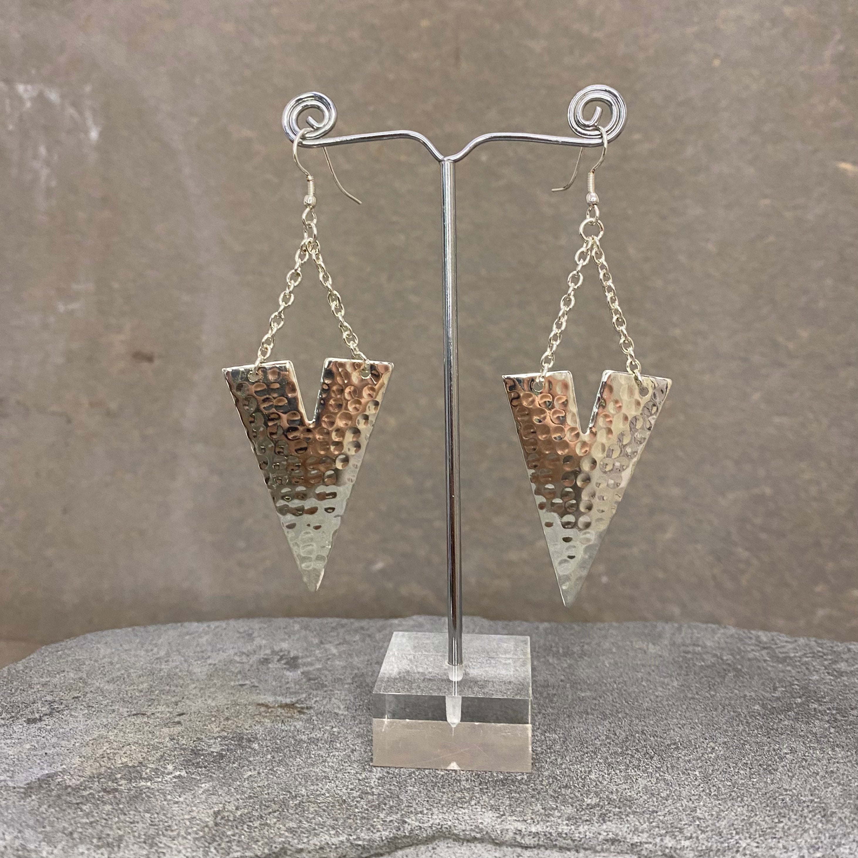 This listing is for a pair of Hammered Triangle Earrings in Silver.