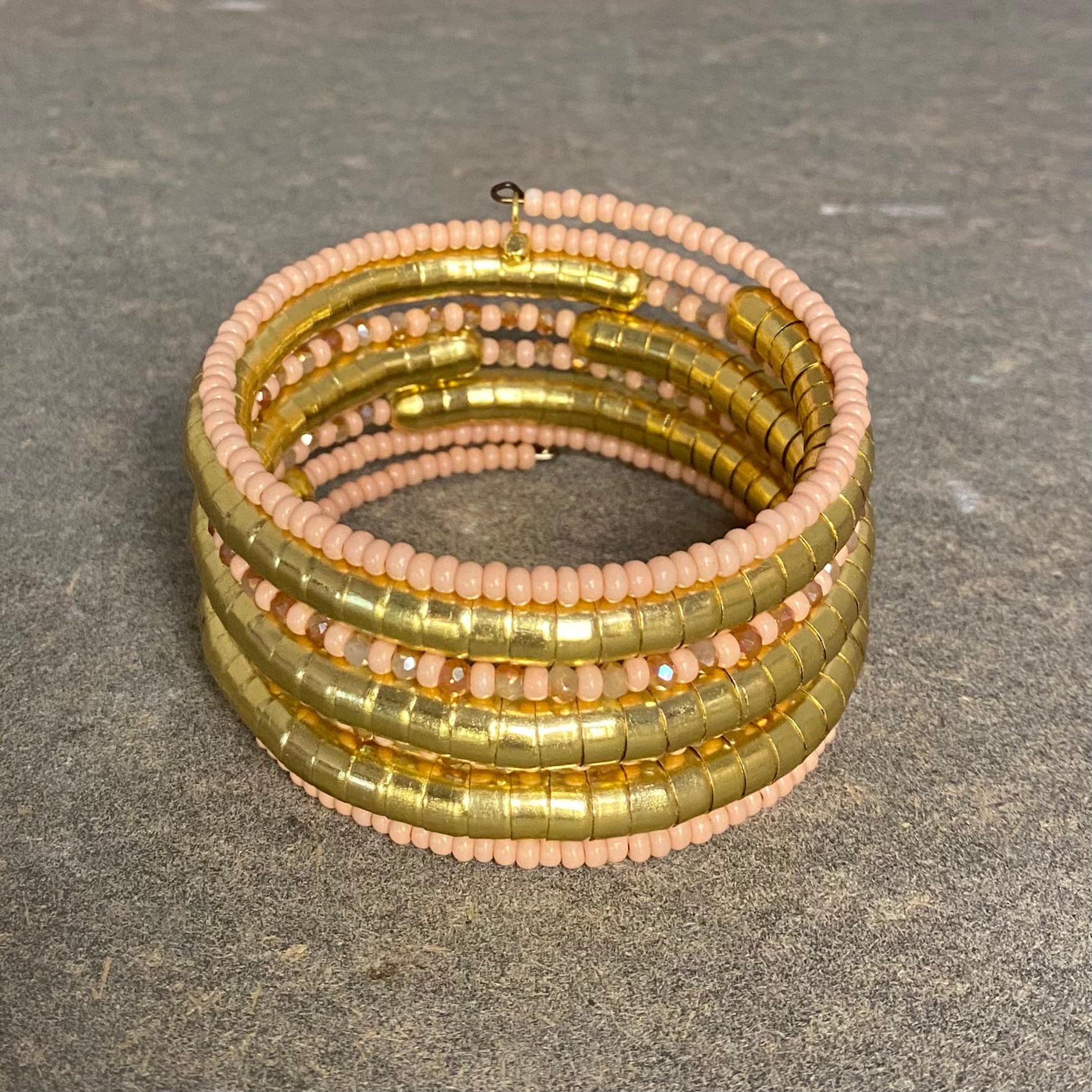 MATERIAL: This Pink Snake Bracelet is made out of brass, and glass beads.