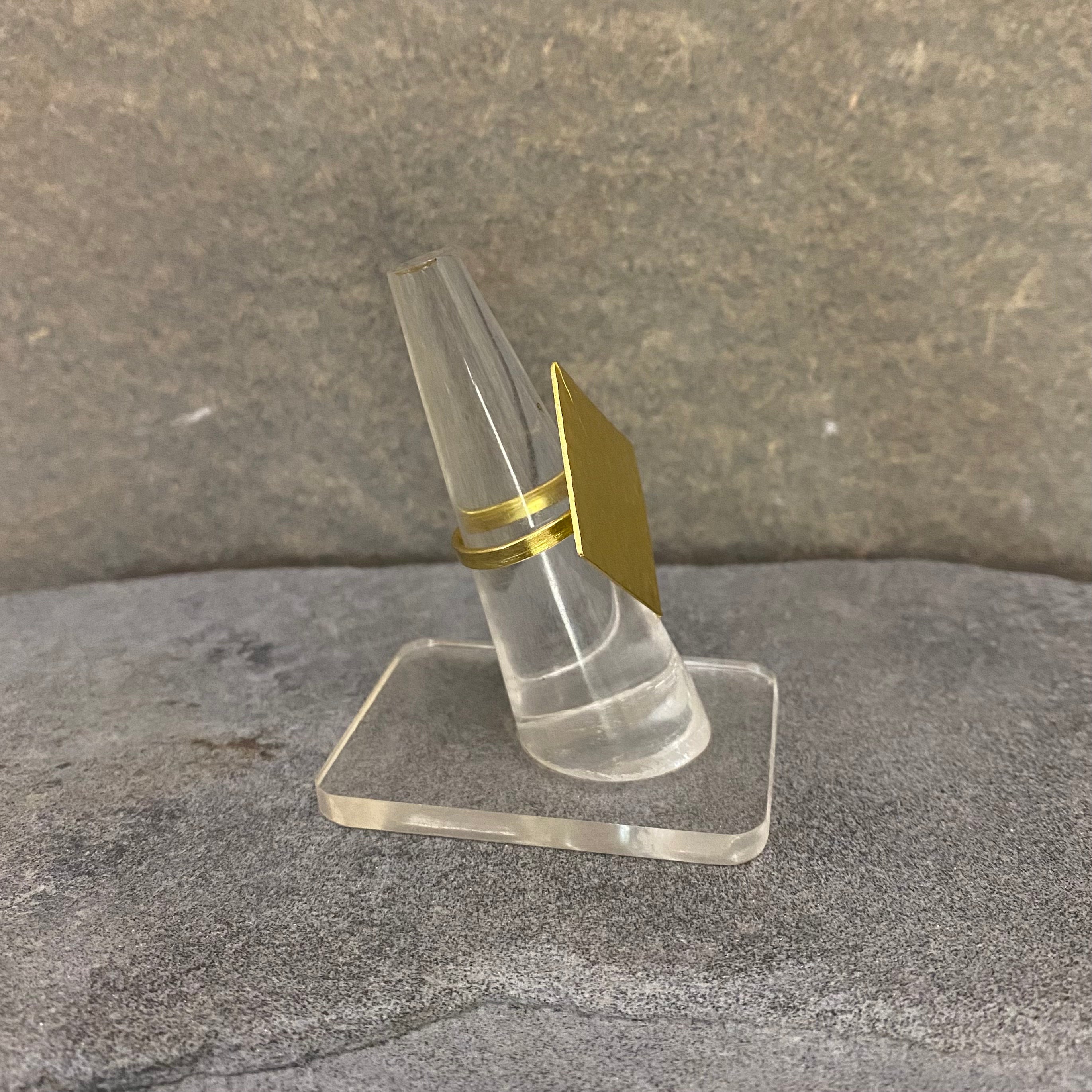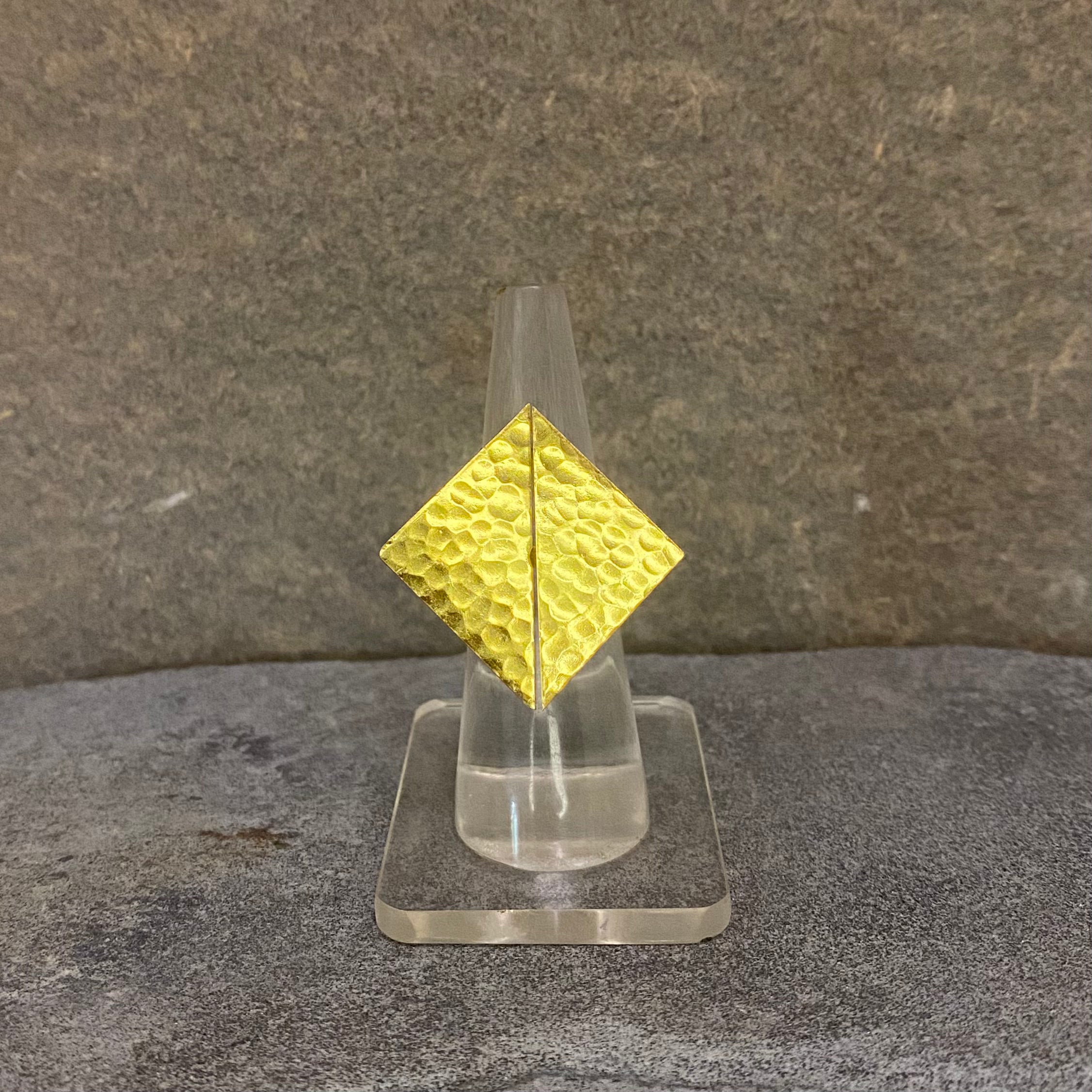 This bold statement ring is crafted from brass with a hammered square design split at the centre. Its textured surface reflects light beautifully, making it a striking accessory that blends minimalism with artisanal charm.